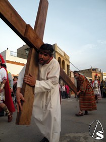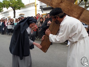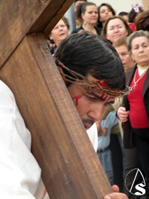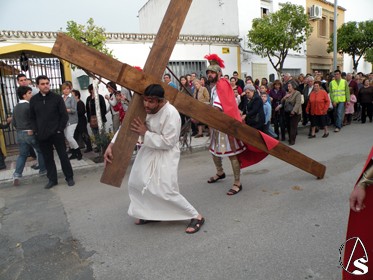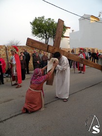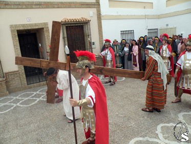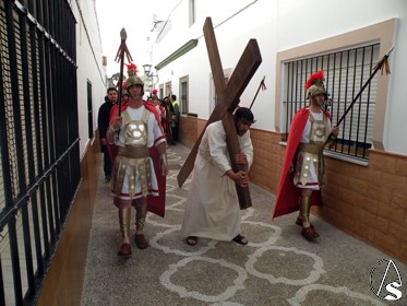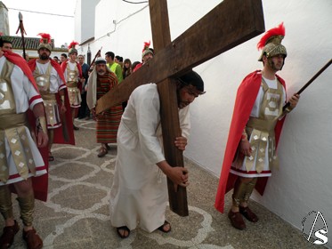 Dónde el centurión romano obliga a Simón de Cirene, encarnado en Carlos Arenas que es un júbilado, y que su mujer Estrella hace de las mujeres lloronas junto con su hermana Pura, Loli, Ana Mª y Matilde que es mujer de Alonso, aquel hebreo que dijo. “es la hora decisiva”. También los dos hijos de Carlos y Estrella actúan, Estrella en el papel de pregonera y Carlos en el papel de José de Arimatea. Incluso el novio de Estrella, Alfonso de la localidad vecina de Burguillos hace de pueblo y actualmente es un desempleado en la vida real.
